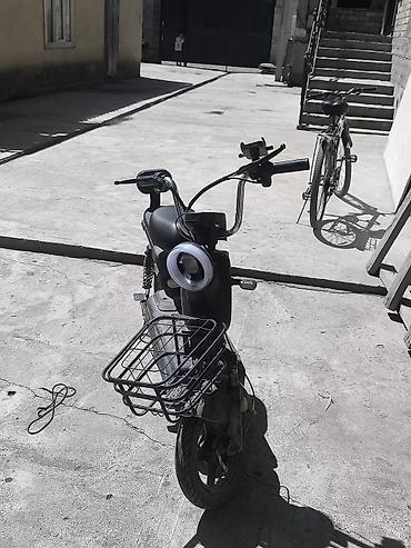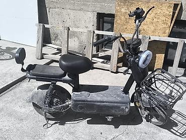 Электроскутер (городской электровеломопед) черного цвета Ключевые особенности: - Компоновка с двумя раздельными сиденьями и задней спинкой-подголовником для пассажира. - Передняя корзина из металл...