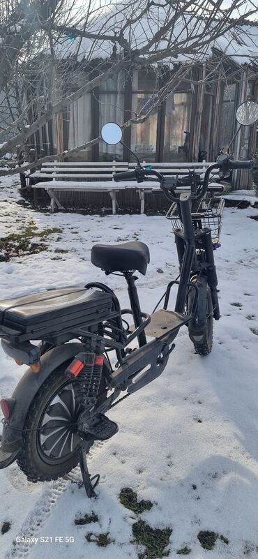 Электроскутер/электровелосипед компактного формата с корзиной и задним кофром-термосумкой. Особенности и комплектация: - Электропривод, привод на заднее колесо, цепная передача. - Аккумуляторная б...27 000 KGS