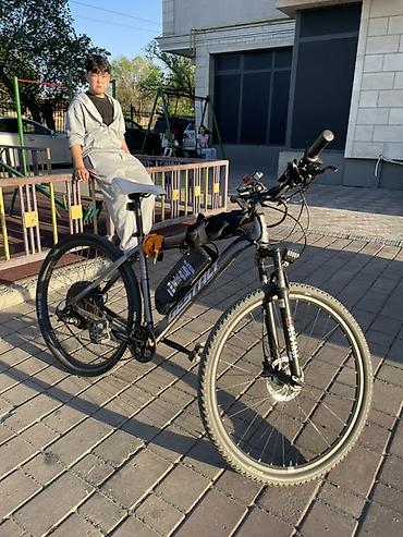 Электровелосипед горного типа (MTB) с центральным расположением аккумулятора на раме. Основные характеристики: матор350ваттный аккумулятор 36вольт.запас хода 40-50км с ассистентом до 60км хватит....