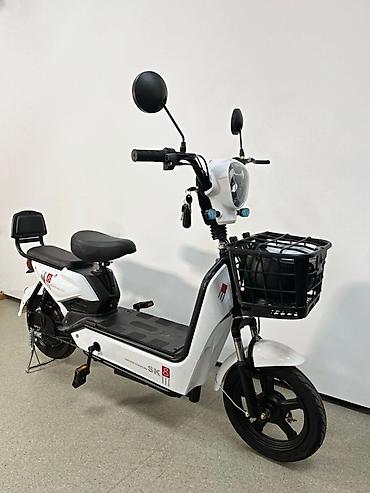 Подходит для ежедневных поездок по городу, даче и курьерских задач. Экономичный, тихий транспорт без необходимости регистрации как мотоцикла (уточняйте нормы вашего региона). Цвет: белый с чёрными элементами, маркировка модели «SK/BCM» на панели.