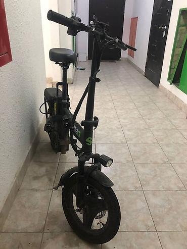 Это компактный складной электровелосипед Максимальная скорость: до 30-40 км/ч. Запас хода: до 35-60км на одном заряде. Особенности: съемная батарея, дисковые тормоза, передняя фара и заднее сидень...