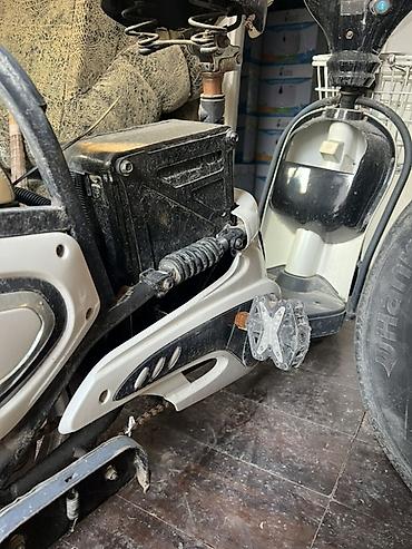 - Передняя вилка с амортизаторами, литые колеса, пневматические шины.