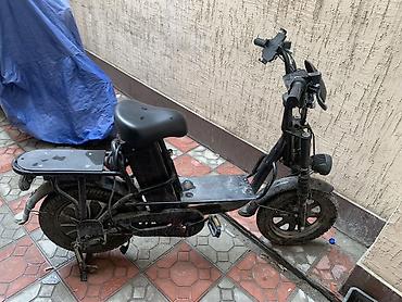 Электровелосипед/электроскутер городского типа - Компоновка: низкая рама с центральной площадкой для ног, седло с амортизацией, задний багажник. - Привод: электрический мотор-колесо на задней оси....
