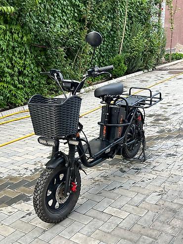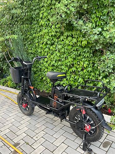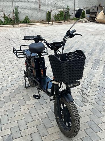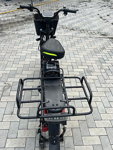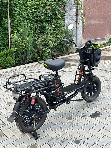Электро велик эки батерейкасы менен - Компоновка: низкая рама, передняя корзина для мелочей, увеличенная задняя грузовая платформа с бортиками и стяжным ремнём. - Посадочные места: основное седло...