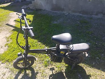 Электровелосипед/электроскутер компактного формата с двумя сиденьями. Основные характеристики и оснащение: - Электродвигатель в заднем колесе (мотор-колесо), дисковый тормоз сзади. - Съемная аккум...