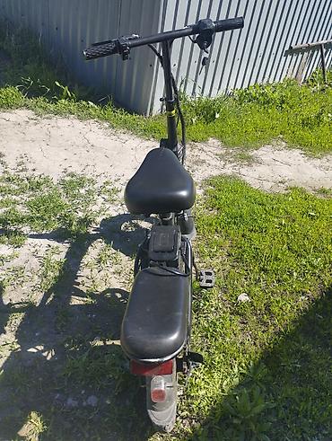 Электроскутер/электровелосипед с пассажирским сиденьем Примечание:Аккумулятор не работает - Компоновка: ступенчатое двойное сиденье (водитель + пассажир), задняя площадка‑подножка для пассажира. ...