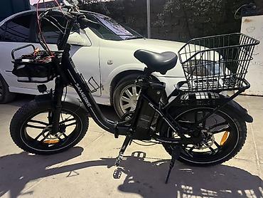 Электровелосипед/электроскутер для курьерской доставки - Компактная рама с низкой посадкой, удобная площадка для ног - Съёмная аккумуляторная батарея, замок зажигания с ключом - На руле: большой ц...