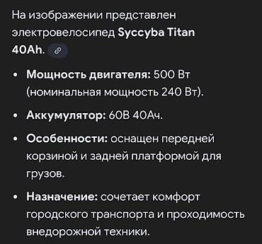 Электровелосипед под доставку либо на повседневную езду! Аккумулятор 48v20ah Мотор 350w + помогатель на педали! Оптом и в розницу! Отправим по всему КР 🇰🇬 Мы находимся на рынке Де люкс 1 пр...Вход•Регистрация