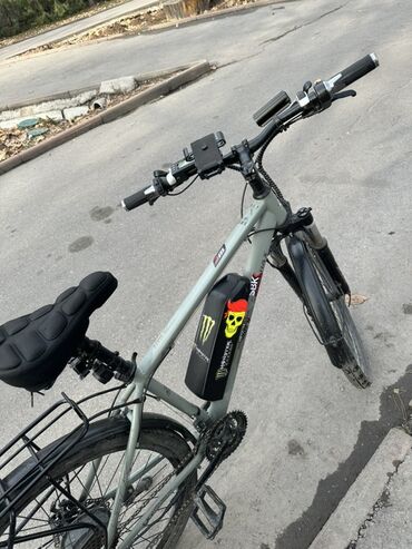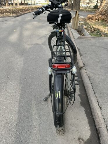 Электровелосипед городского/треккингового типа с дополнительным оборудованием.