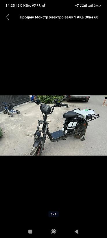 Электровелосипед/электроскутер «Монстр» 2 акб, передний корзина, 2 зарядка, 2 ключ чип менен, состояние идеальное , 1 акб 60v30, 2 акб 60v25. Сиденье комфорт 6 пружин, специальный багажник для одного аккумулятора