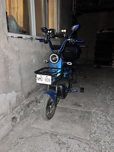 Электровелосипед/электроскутер Super (с педалями) — синий, городского типа.