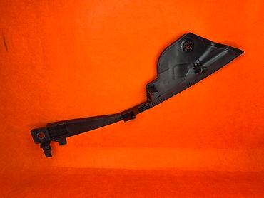 Элемент отделки салона автомобиля, выполненный из черного пластика. Деталь имеет изогнутую форму, предназначенную для установки на внутреннюю часть кузова, предположительно, на стойку или дверной проем. На внутренней стороне элемента видны крепления и технические маркировки, что указывает на его роль в интерьере автомобиля. Этот компонент служит для создания завершенного внешнего вида салона и защиты внутренних структур.