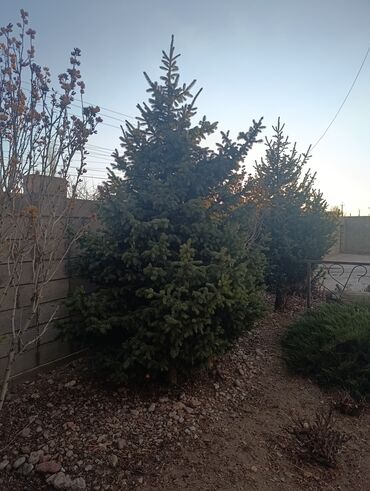 Продается голубая ель. Тяньшанская ель.2 шт. Туя 2 шт Иссыкульская . Высота более 2 метров . Цена договорная. Продается сосна. Продается ель. Есть ещё туя. Высота всех деревьев примерно 2,5 метр.