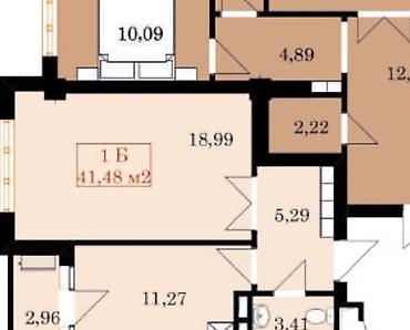 1-комнатная квартира, 41,48 м², планировка 1Б