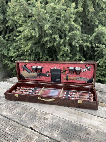 Подарочный набор для пикника/шашлыка в чемодане. Состав: - Прочный кейс под «кожу» с ручкой и металлическими замками - 6 шампуров с витым прутком и массивными лакированными деревянными рукоятками,...