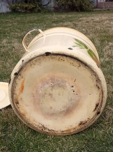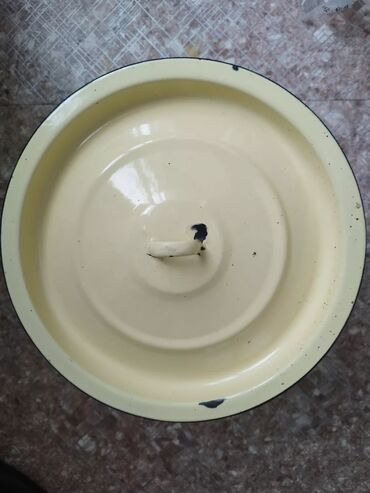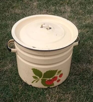 Эмалированная кастрюля объемом 40 литров с крышкой. В идеальном