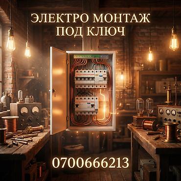 Электрик Бишкек Услуги электрика — электромонтажные работы 24/7. - Срочный выезд. - Опытные мастера. - Полный спектр электромонтажных работ: монтаж и подключение электрооборудования, прокладка и ...