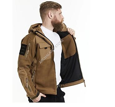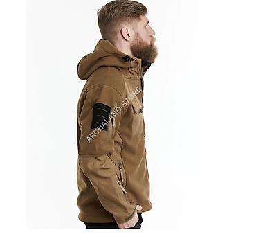 7.26 фирменная куртка soft shell Мужская флисовая куртка/софтшелл черного цвета в тактическом стиле. - Материал: плотный флис с усиленными накладками на плечах и рукавах из износостойкой ткани. -...