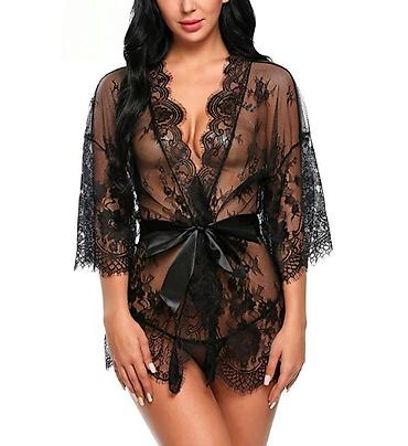 Халат, Полиэстер, С кружевом, 3XL