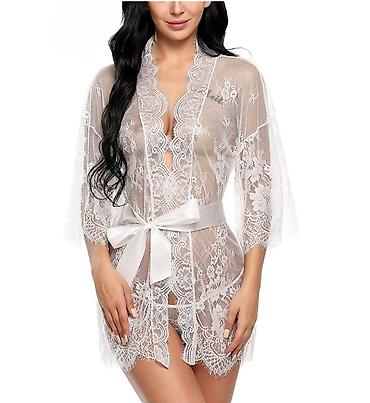 • кружевные узоры по всему халату, добавляющие элегантность и утонченность