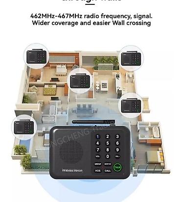 Это FM беспроводной интерком модели T-666, предназначенный для связи на частотах 462MHz-467MHz. Устройство обеспечивает широкое покрытие сигнала и хорошую проходимость сквозь стены, что делает его удобным для использования внутри помещений, таких как дома или офисы. Интерком позволяет подключать неограниченное количество устройств на одном канале, что удобно для групповой коммуникации.