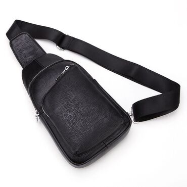 Это стильная мужская барсетка через плечо, выполненная из прочной чёрной натуральной кожи.
