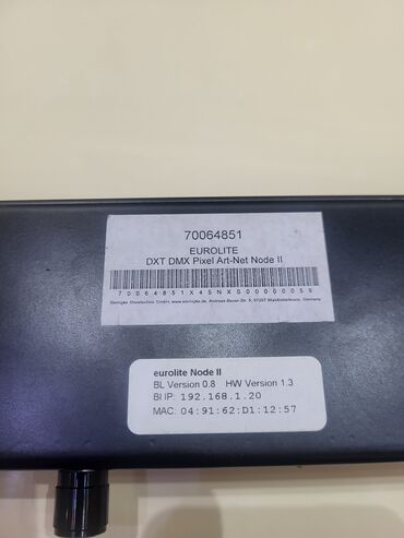 - Маркировка: Eurolite Node II, DXT Series. Модель: DXT DMX Pixel Art-Net Node II (артикул 70064851).