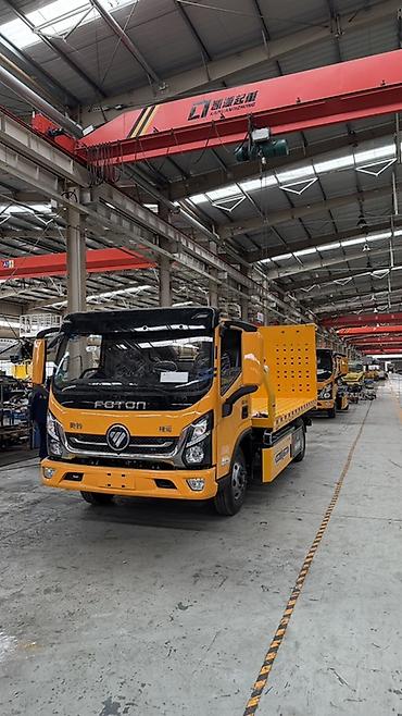 - Шасси Foton с двухдверной кабиной, широкое лобовое стекло, зеркала с дополнительными секциями, дневные ходовые огни и противотуманные фары.