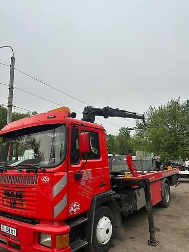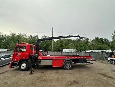 Эвакуатор с краном-манипулятором и платформой для перевозки автомобилей MAN-M 03 очень хорошем состоянии. Дизель - Шасси грузовика с низкой цельнометаллической платформой под авто - Гидравлический...