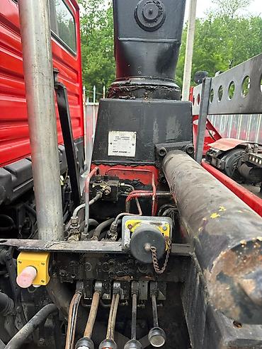 Эвакуатор с краном-манипулятором. - Платформа с лебёдкой и петлями для крепления груза/авто. - Гидроманипулятор (кран) красного цвета с выносными опорами для устойчивости при погрузке. - Бортовая ...