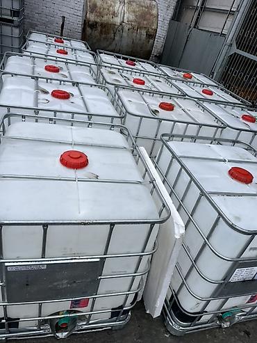 Еврокубы (IBC-контейнеры) пластиковые в металлической обрешетке на поддонах. - Объем: стандарт 1000 л (визуально — кубические баки с верхней горловиной и нижним сливным краном). - Материал: внутре...