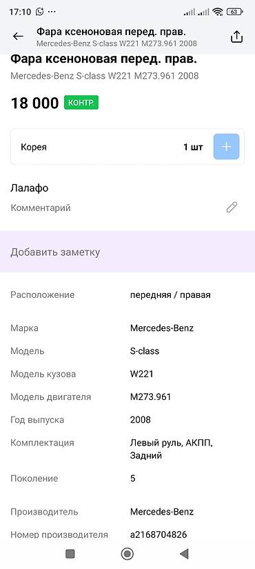 - Подходит для S‑Class W221 (двигатель M273.961, 2008 г.в.).