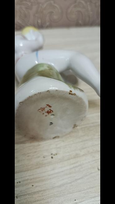 - Цветовая гамма: белый фарфор, светлые волосы, акценты красного, жёлтого и голубого; постамент с зелёным наплывом.