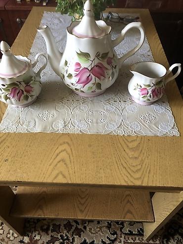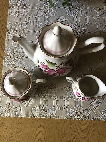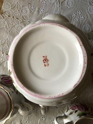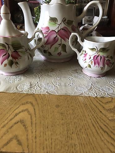 Фарфоровый чайный набор (3 предмета) с ручной росписью. Пр-во: Добрушский фарфоровый завод СССР. Новый. Цена: 1500 сом.