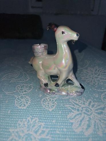 Фарфоровый подсвечник «Олень/козочка» с перламутровой глазурью. -