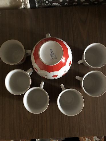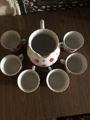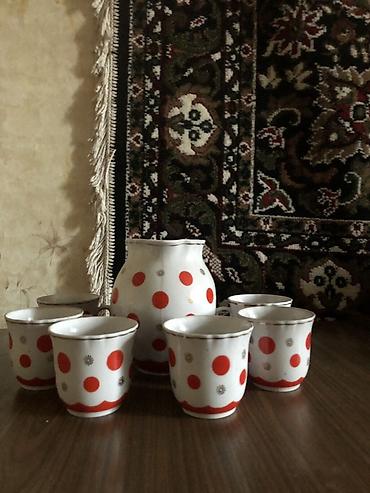 Фарфоровый сервиз для напитков: кувшин + 6 кружек. СССР. Городницкий фарфоровый завод. Винтаж. Новый. Цена : 1500 сом.