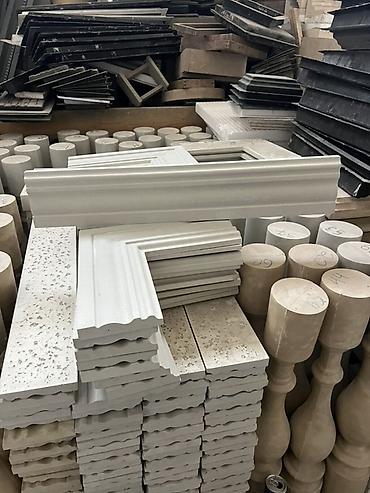 - Архитектурные элементы из архитектурного бетона: профили/наличники, карнизы, фризовые планки, доборные элементы и балясины (формы и заготовки). Гладкая фактура лицевой поверхности, четкая проработка профиля, пригодны под окраску фасадными составами. Используются для оформления проемов, карнизов, обрамлений и декорирования фасадов и интерьеров.