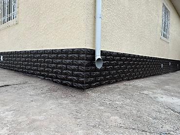 - Применение: декоративная защита цоколя вокруг дома, отделка входных ступеней по бокам, откосов окон в уровне цоколя, стен подполья и спусков в подвал.