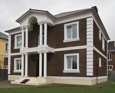 Мы профессионально выполняем монтаж фасада АМК (акрил + мраморная крошка) и устанавливаем декоративные элементы любой сложности.