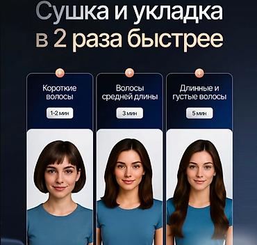 - 4 режима температуры: 100°C (быстрая сушка), 80°C (обычная сушка), 60°C (щадящая сушка), холодный воздух для фиксации.