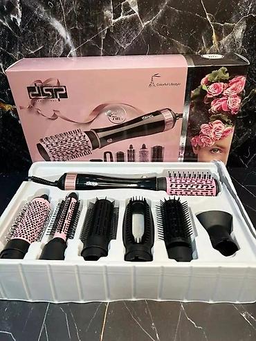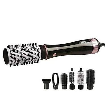 Многофункциональная фен-щетка DSP в черно-розовом цвете, предназначенная для сушки и укладки волос. В комплект входит семь различных насадок, что позволяет создавать разнообразные прически — от придания объема до выпрямления. Удобная ручка обеспечивает комфортное использование, а сменные насадки легко устанавливаются и снимаются. Идеально подходит для повседневного использования и создания укладок.