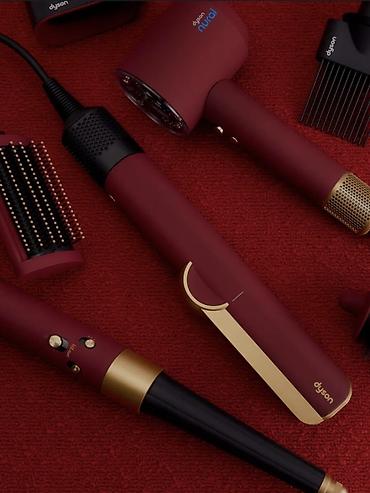 Фен-выпрямитель Dyson AirStrait HT01 (бордовый с золотистыми акцентами)