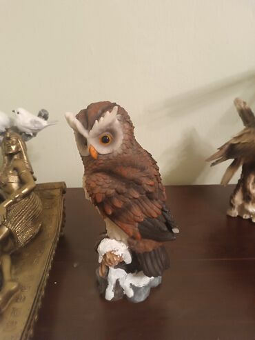 Фигурка орла, изображающая хищную птицу с детализированным оперением, сидящую на ветке или скале. Выполнена в реалистичных коричнево-золотистых тонах, с четко проработанными лапами и клювом. Эта декоративная статуэтка станет прекрасным дополнением к интерьеру, идеально подходит для украшения рабочего стола, полки или камина. Придаст пространству элемент величия и естественной красоты.