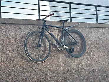 Городской велосипед (фиксед/сингл-спид стиль) - Рама: стальная, классическая геометрия, белый цвет - Передняя вилка: жесткая - Колеса: 700C с ободами LOOK, разная расцветка (передний – белый, задн...