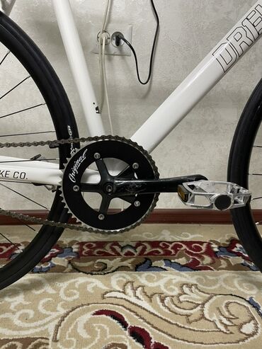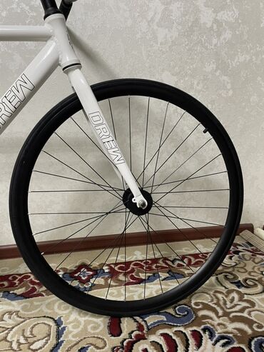 - Рама и вилка: алюминий, геометрия трек/урбан, цвет белый с фирменными логотипами DREW.