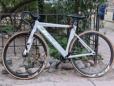 Идеален для городских поездок и трековой езды: минимализм, аэродинамическая рама, быстрая накатистая резина и аэро-колеса. Стильный белый сетап с контрастными бежевыми боковинами покрышек.