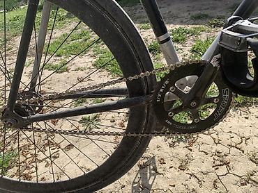 - Каретка под шатуны с одной звездой; передняя звезда Sport (надпись 1/2" x 1/8"), трансмиссия под широкую трековую цепь.