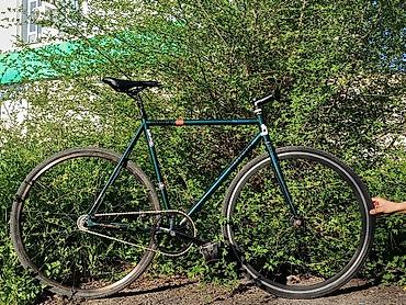 - Рама и вилка: стальная, классическая геометрия трек/урбан, цвет – темно‑зелёный металлик.