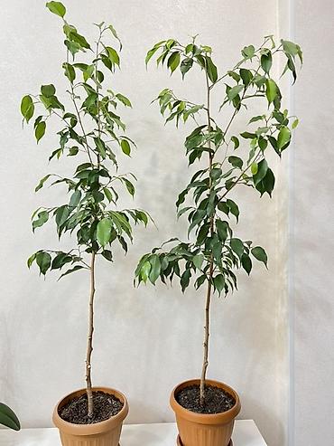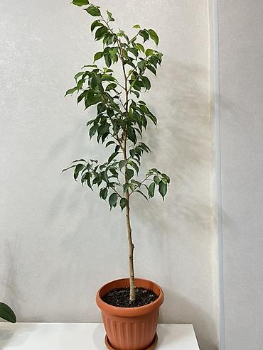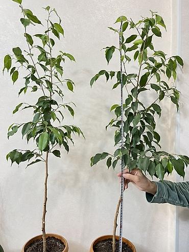 Фикус Бенджамина в горшке - Домашнее декоративное растение с плотной кроной и глянцевыми зелёными листьями. - Высота растения: около 70–90 см (включая горшок). - Посажен в пластиковый горшок с под...