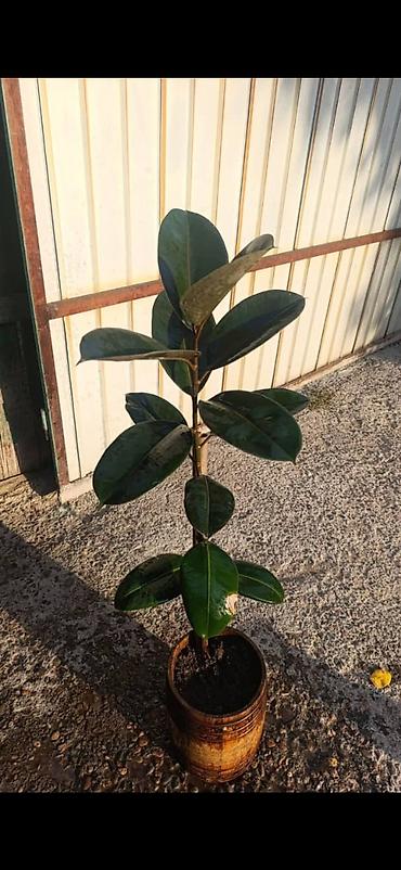 Фикус (эластика) в горшке. Высота — 1 м 20 см. Домашнего выращивания. Крупные плотные листья, прямой ствол, ухоженный вид. Подходит для озеленения квартиры или офиса, неприхотлив в уходе: любит рассеянный свет и умеренный полив. Цена: 600 сом.Самовывоз.